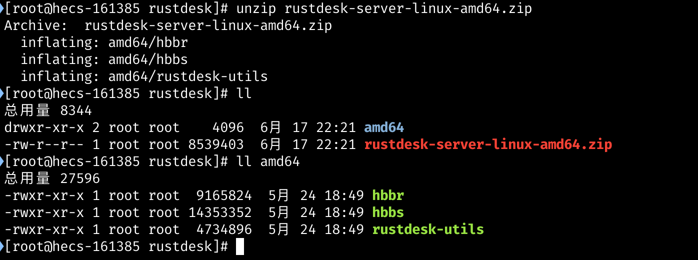 unzip rustdesk-server-linux-amd64.zip