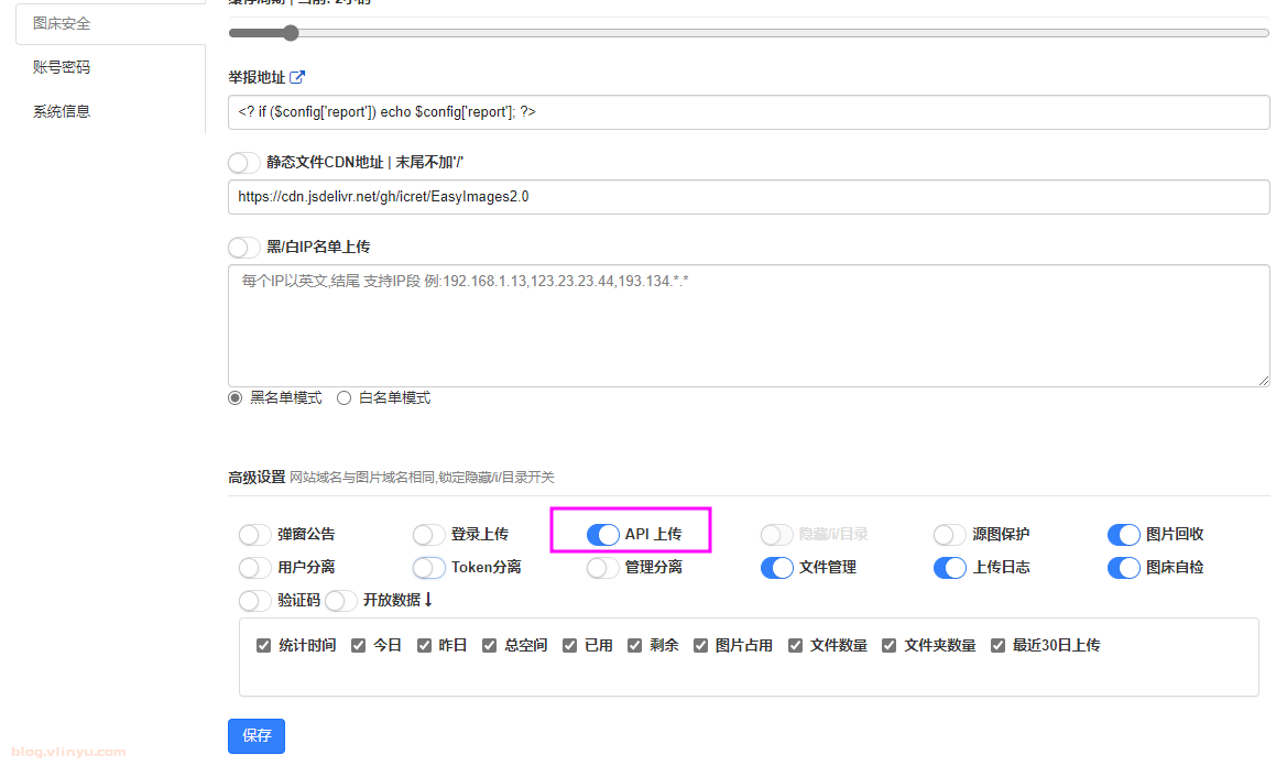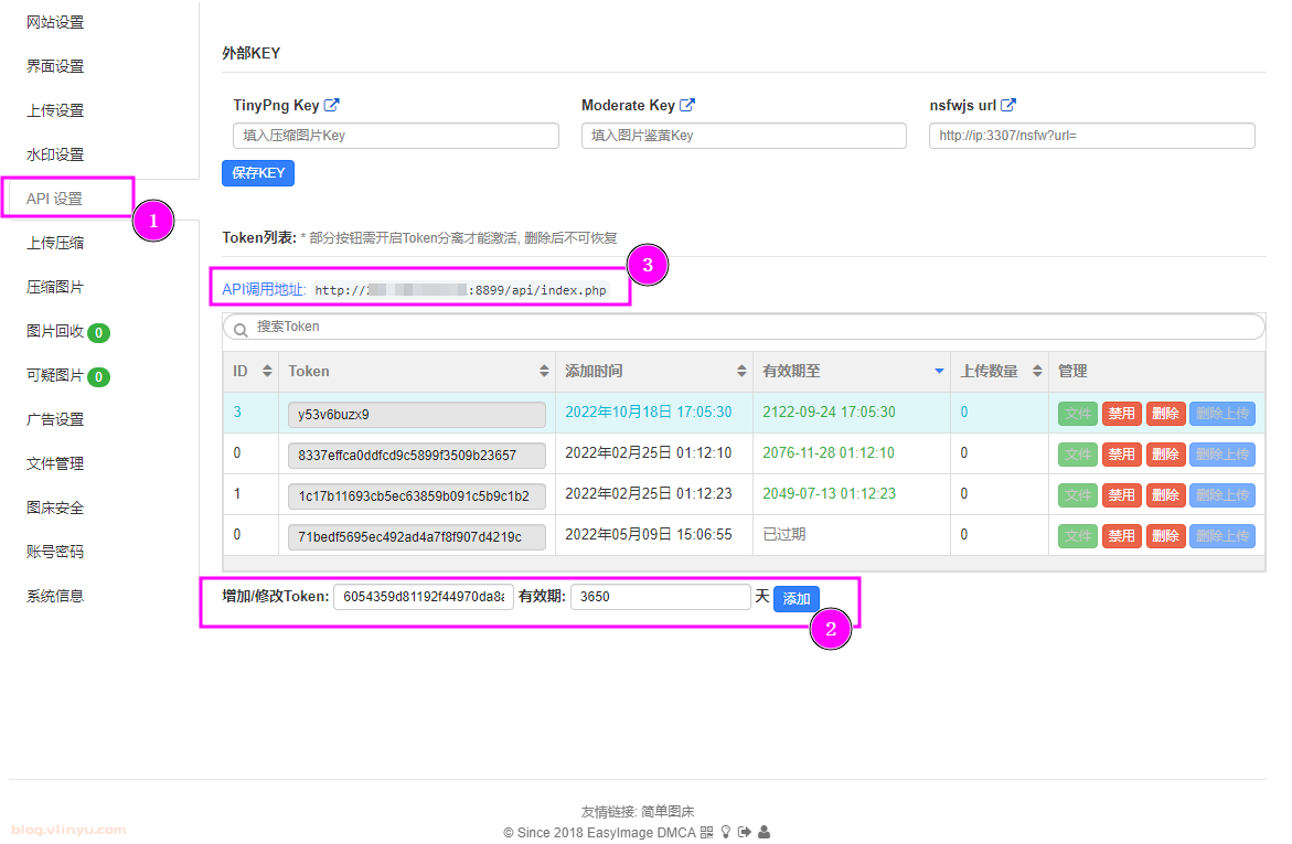 设置->图床安全->API 上传,然后选择API 设置获取一个Token。
