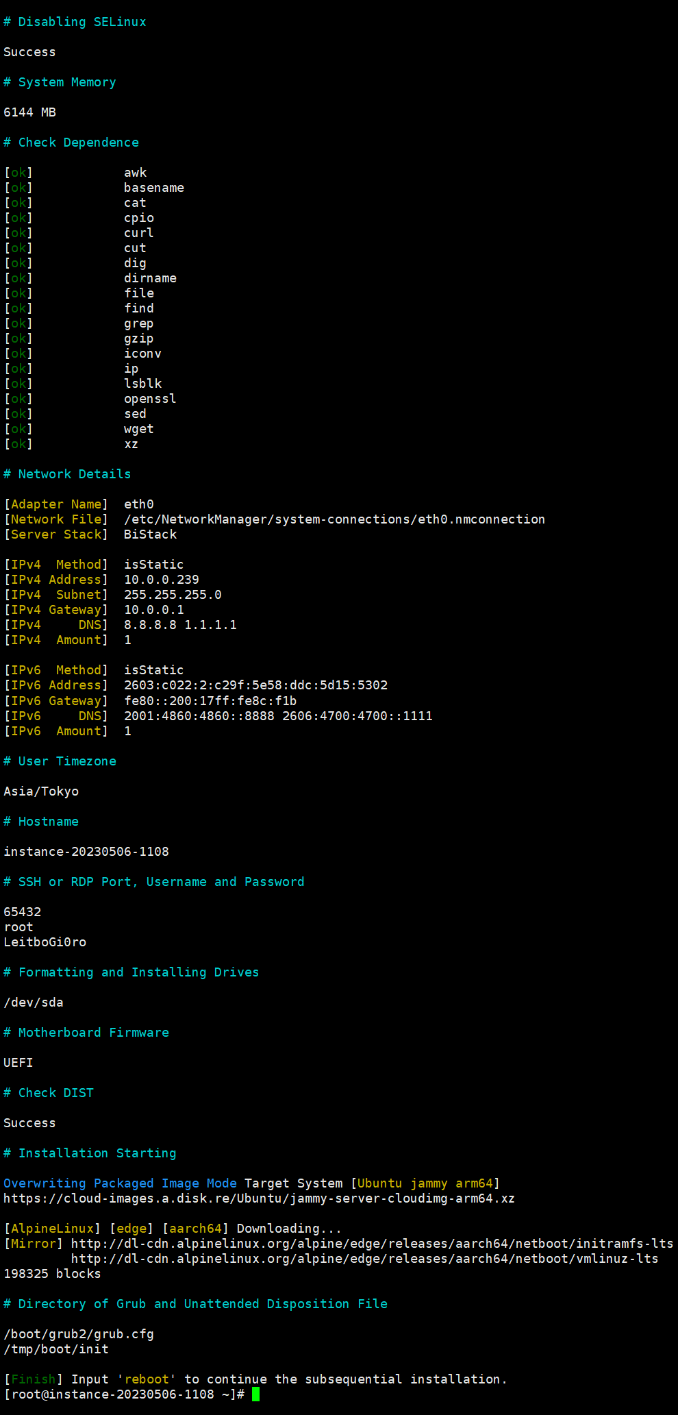目前项目获得了很多朋友的认可,支持 Debian 9+,包括Debian 12,新版 AlmaLinux,RockyLinux,CentOS,Fedora,AlpineLinux Edge,Ubuntu 20.04 22.04 等系统之间,arm64 和amd64 架构之间永久互装,也支持从甲骨文自带的 Oracle Linux 等类红帽系统重装到脚本支持的任意系统(红帽系内存要求较高,2GB以上),当然也可以安装到 Windows,暂不支持从 Windows 装回 Linux。