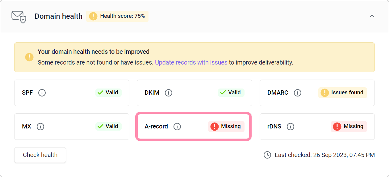 创建 A 记录和 PTR 记录并不一定能保证您的邮件会进入收件人的主收件箱。虽然它有助于改善域名健康状况,但还有其他重要因素会影响邮件的发送。