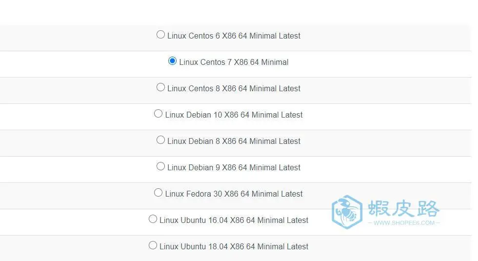 为了公平起见,每次测试完虾皮路都会重新安装一次系统,这里选择的是Linux Centos 7 X86 64 Minimal。