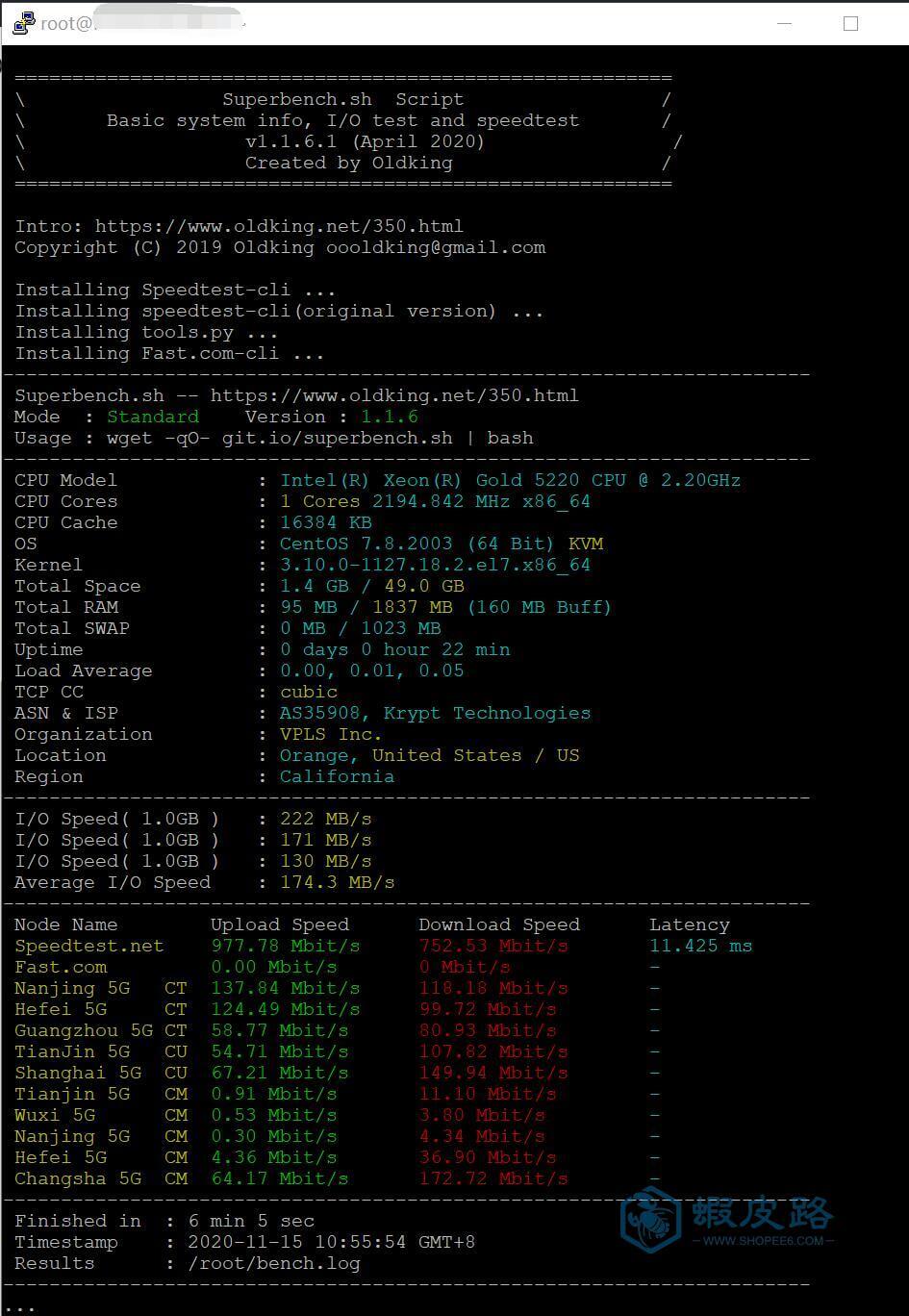 这里虾皮路发现,内核版本在5.9以上,连硬盘的IO都高一点,目前BBR PLUS内核是4.14.129,硬盘的IO会低一些。在提速效果这块,速度和上面差别不大。